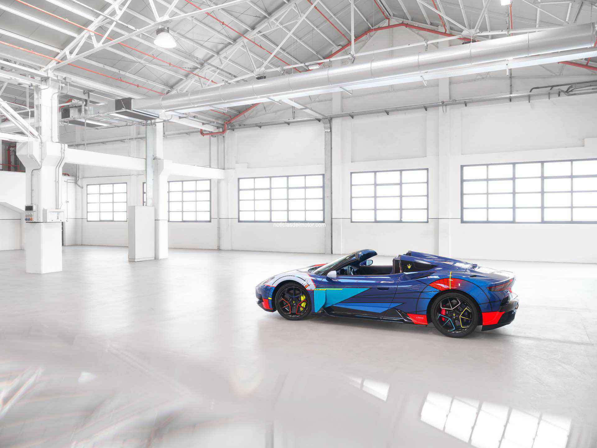 Completamente pintado a mano, el spyder del Tridente se convirtió en un lienzo en blanco donde la personalización y la experimentación dieron vida a una obra maestra contemporánea. Quince colores extraordinarios y miles de horas de artesanía experta contribuyeron a un resultado verdaderamente único. En particular, los colores elegidos para este proyecto, desde el amarillo ácido personalizado hasta el cálido tono naranja y el vibrante verde eléctrico, fueron diseñados y formulados para evocar diferentes emociones en cada detalle. Además, desde el grabado láser avanzado en los asientos de Alcantara hasta los elementos deportivos de fibra de carbono del habitáculo, la interacción de textura y tonos crea una experiencia sensorial intensa y refinada.