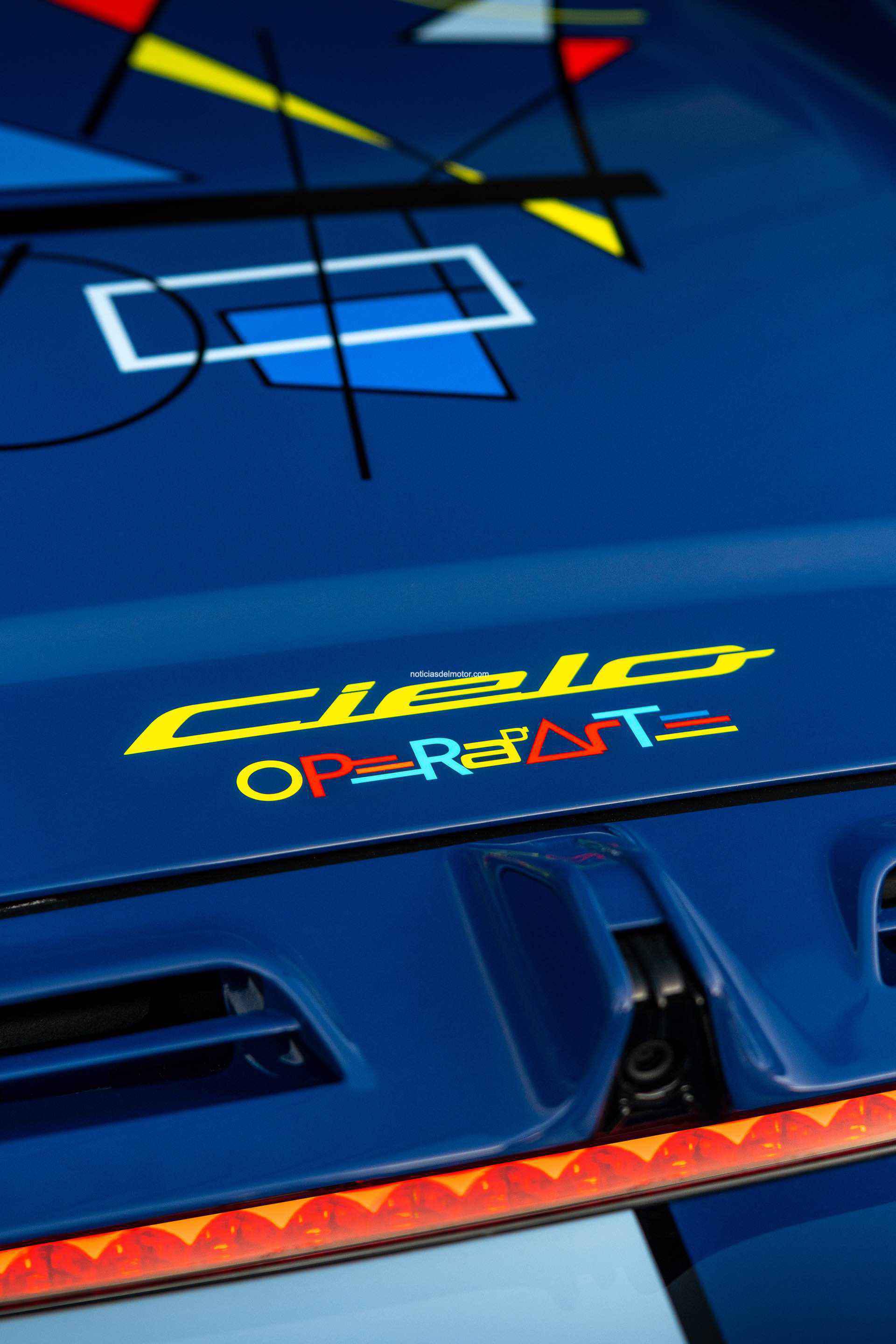 Fiel al espíritu del Programa Fuoriserie y concebido como una "pizarra blanca" para las personalidades más originales, el interior del MC20 Cielo "Opera d'Arte" combina detalles pintados a mano en la parte inferior del salpicadero con inserciones de cuero en la sección superior, creando la sensación de estar envuelto en una obra maestra verdaderamente única. El mismo cuidado artesanal y la visión abstracta continúan en el exterior: las llantas están adornadas con detalles gráficos únicos en combinaciones de colores que amplifican el impacto visual general del automóvil.