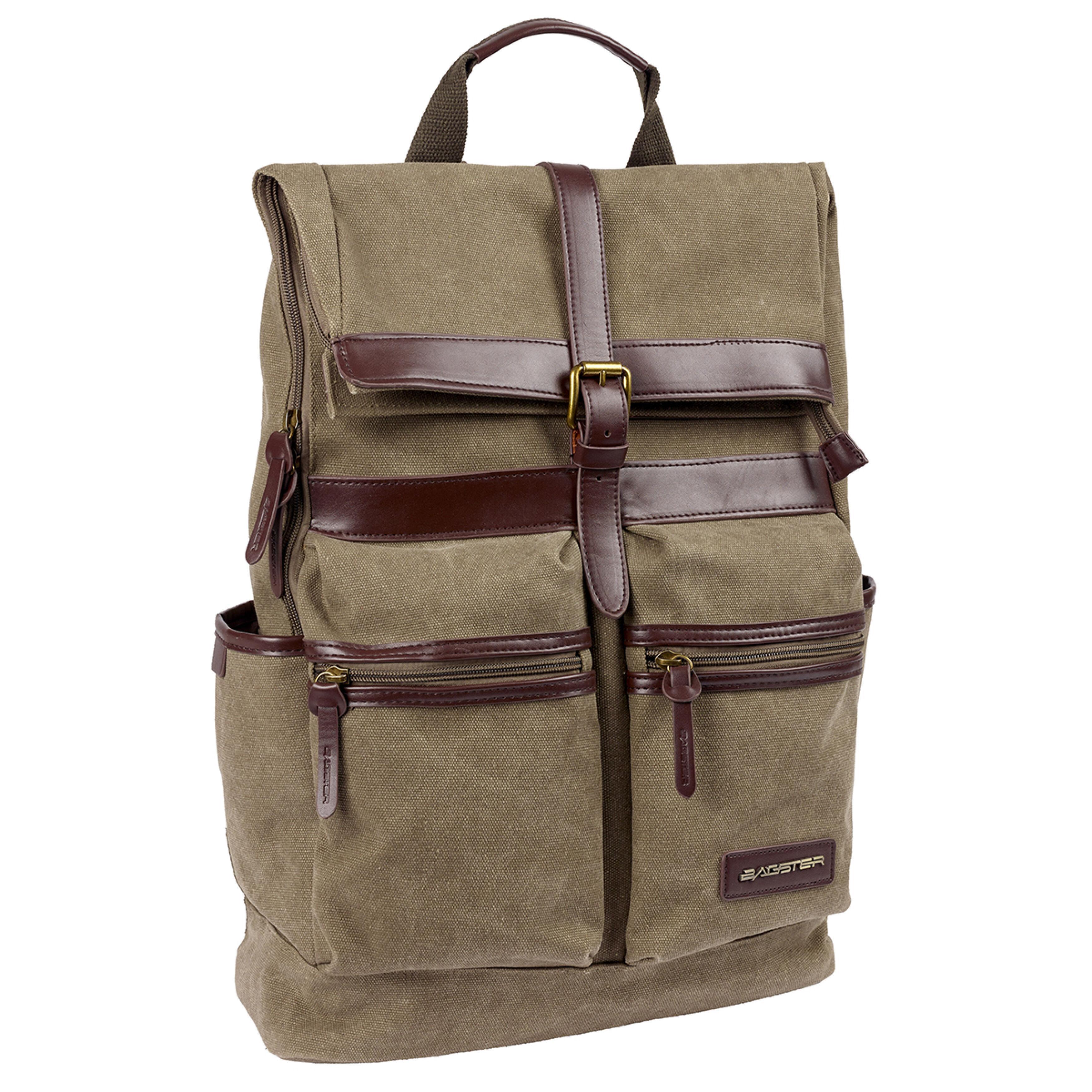 Mochila vintage MOTOR (caqui): La mochila MOTOR, de algodón grueso recubierto, combina estilo urbano, funcionalidad y 20 litros de volumen para tus desplazamientos en moto y por la ciudad.