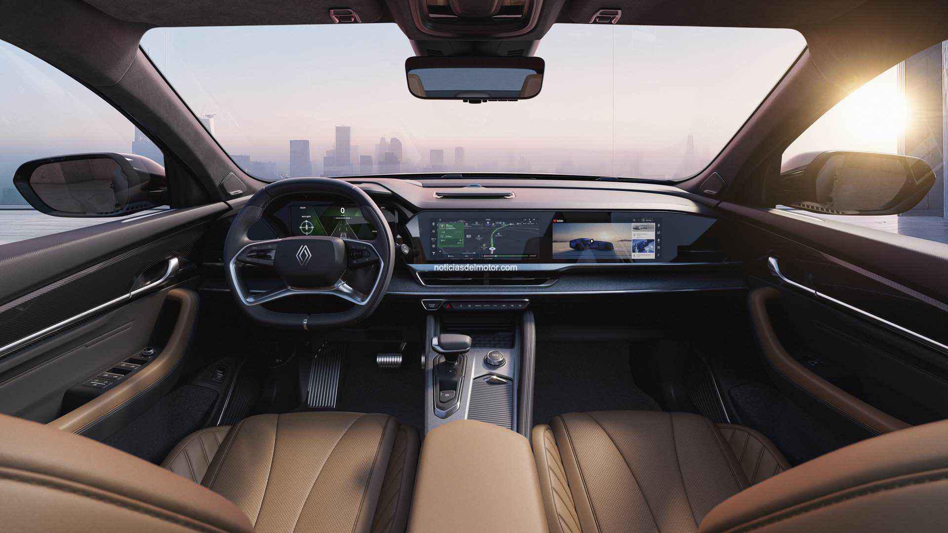 Renault Filante, el coche más largo de la gama Renault, adopta un enfoque distintivo en el diseño interior, haciendo hincapié en el confort, la tecnología y la calidad percibida. El interior cuenta con un amplio salpicadero horizontal con tres pantallas panorámicas, cada una de 12,3 pulgadas (cuadro de instrumentos, pantalla central y pantalla del pasajero), que forman un todo sin fisuras denominado OpenR Panorama Screen. Esta disposición se completa con una pantalla de realidad aumentada de 25,6 pulgadas. Con estas características, el habitáculo establece nuevos estándares en tecnología inéditos, permitiendo a los conductores leer la información con claridad y acceder a un mayor nivel de inmersión.