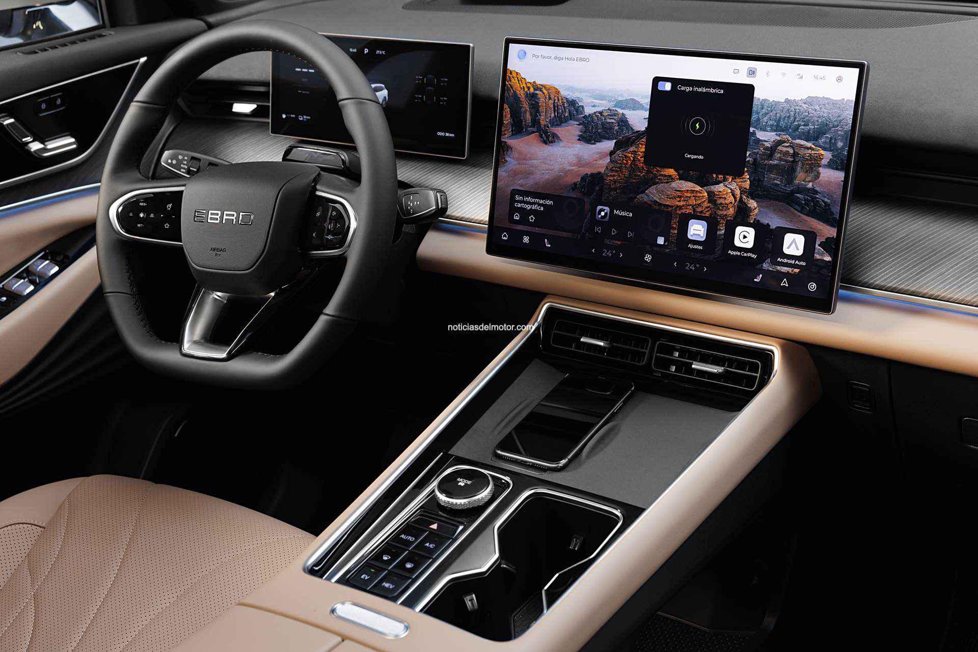 El EBRO s900 integra un ecosistema digital avanzado diseñado para simplificar el uso del vehículo. La pantalla central táctil de 15,6” con resolución 2,5K HD, el cuadro de instrumentos digital de 10,25” y el Head-Up Display W-HUD de 8,8” permiten acceder a la información de forma clara, intuitiva y sin distracciones.