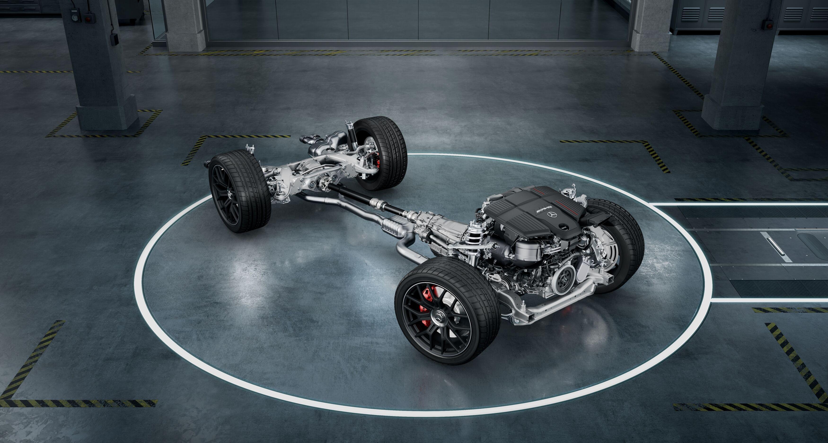 • Tracción total AMG Performance 4MATIC+ totalmente variable con diferencial de deslizamiento limitado en eje trasero controlado electrónicamente.