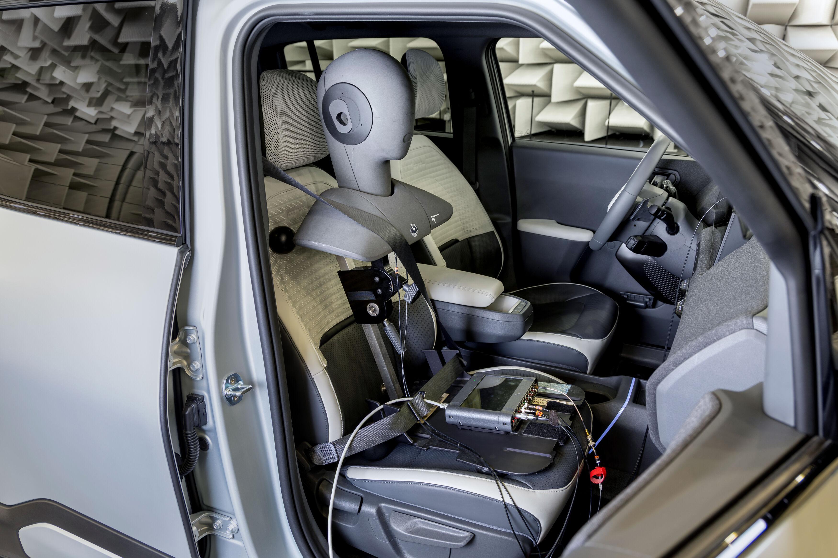 Desde las primeras fases de desarrollo, el Centro Técnico de Hyundai Motor Europe (HMETC) utilizó simulaciones numéricas avanzadas, prestando especial atención a reducir el ruido de la carretera a velocidad alta. Las pruebas NVH realizadas en banco permitieron obtener mediciones precisas y repetibles en un espacio controlado. Esto ayudó a los ingenieros a aislar frecuencias específicas e implementar medidas específicas para reducir el ruido. Este método elimina variables externas, como el clima cambiante o las diferentes superficies de la carretera.