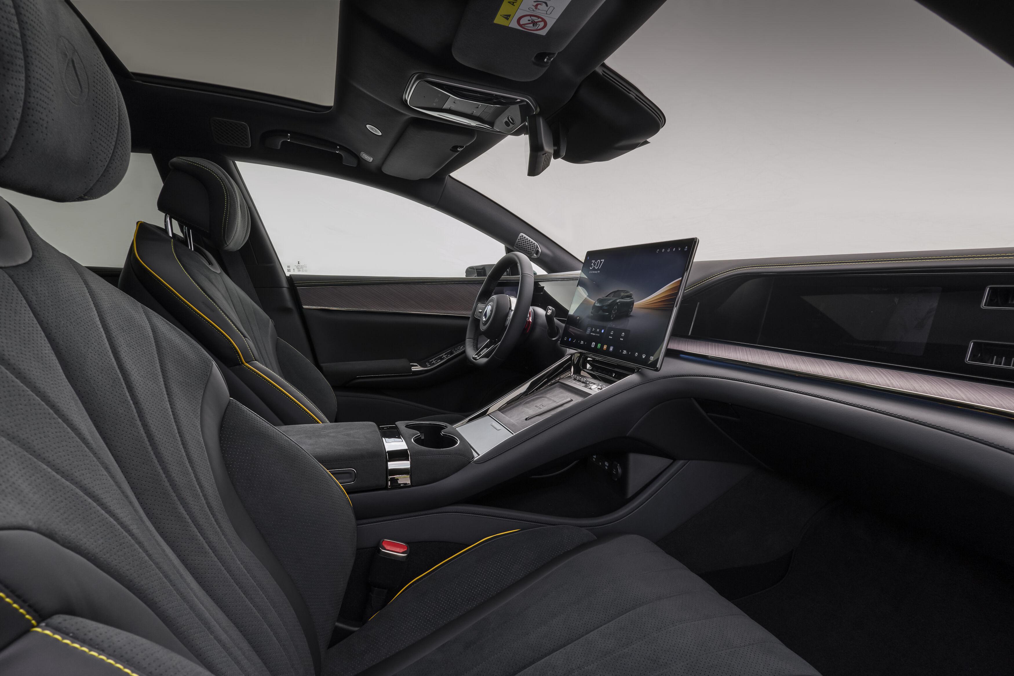 Entre sus tecnologías a bordo se incluyen un head-up display de realidad aumentada de 50” (127 cm), un sistema de infoentretenimiento central de 17,3” (44 cm) que ‘flota’ por delante del salpicadero y un par de pantallas adicionales de 13,2” (33,5 cm): una para la instrumentación y otra para que el acompañante pueda interactuar con el sistema de infoentretenimiento.