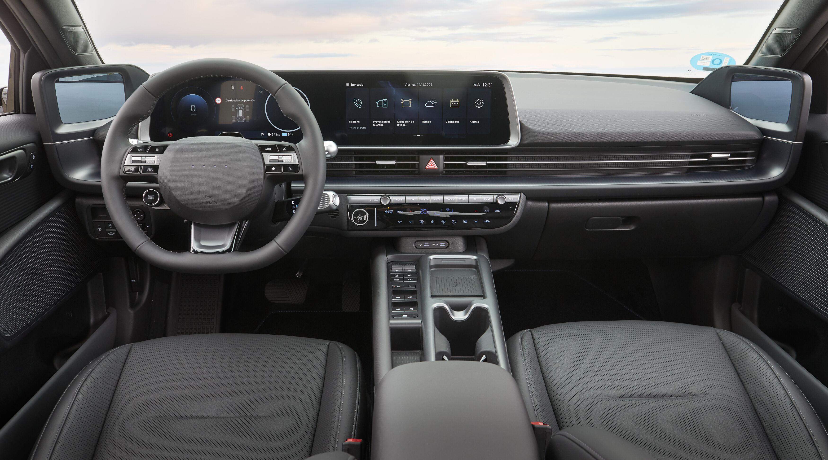 Nada más verlo queda claro que el diseño tiene mucho peso. El frontal cambia un poco y ahora es más deportivo, mientras que la parte trasera estrena un alerón tipo “cola de pato” en lugar del anterior de doble ala. Son pequeños cambios, pero se notan y, lo más importante, ayudan a mantener un coeficiente aerodinámico de 0,21, uno de los más bajos del mercado. También estrena nuevas llantas y retrovisores digitales, que rematan un exterior con mucha personalidad. Dentro, el piso plano de la plataforma E-GMP y la larga distancia entre ejes hacen que sea grande y también cómodo. El interior transmite calidad, con un nuevo volante de tres radios, una consola más intuitiva con mandos físicos y dos pantallas panorámicas de 12,3 pulgadas.