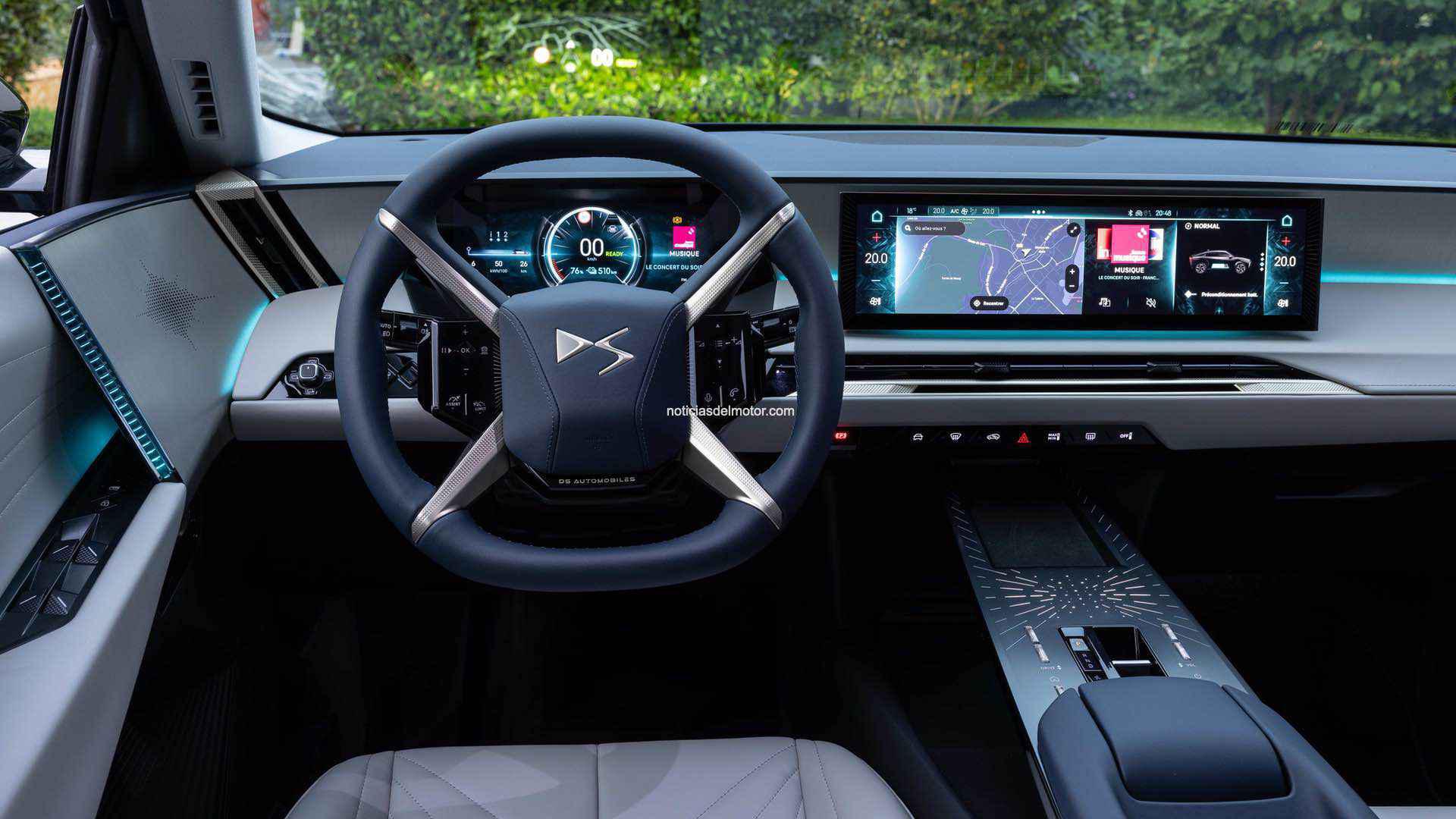 En el interior, la experiencia se eleva gracias a una ergonomía estudiada al milímetro y un sistema de acceso y arranque manos libres que da la bienvenida al conductor. La insonorización de referencia aísla el habitáculo del ruido exterior, permitiendo disfrutar del silencio o del sistema de sonido Electra 3D de Focal en su máxima expresión. El conductor accede a toda la información a través de dos pantallas: la del cuadro de instrumentos HD de 10,25”, que se complementa a la perfección con el DS EXTENDED HEAD-UP DISPLAY, y la pantalla central de 16”, que da acceso a las principales funcionalidades del automóvil con la fluidez de un smartphone también a través de la voz, gracias a DS Iris System 2.0.