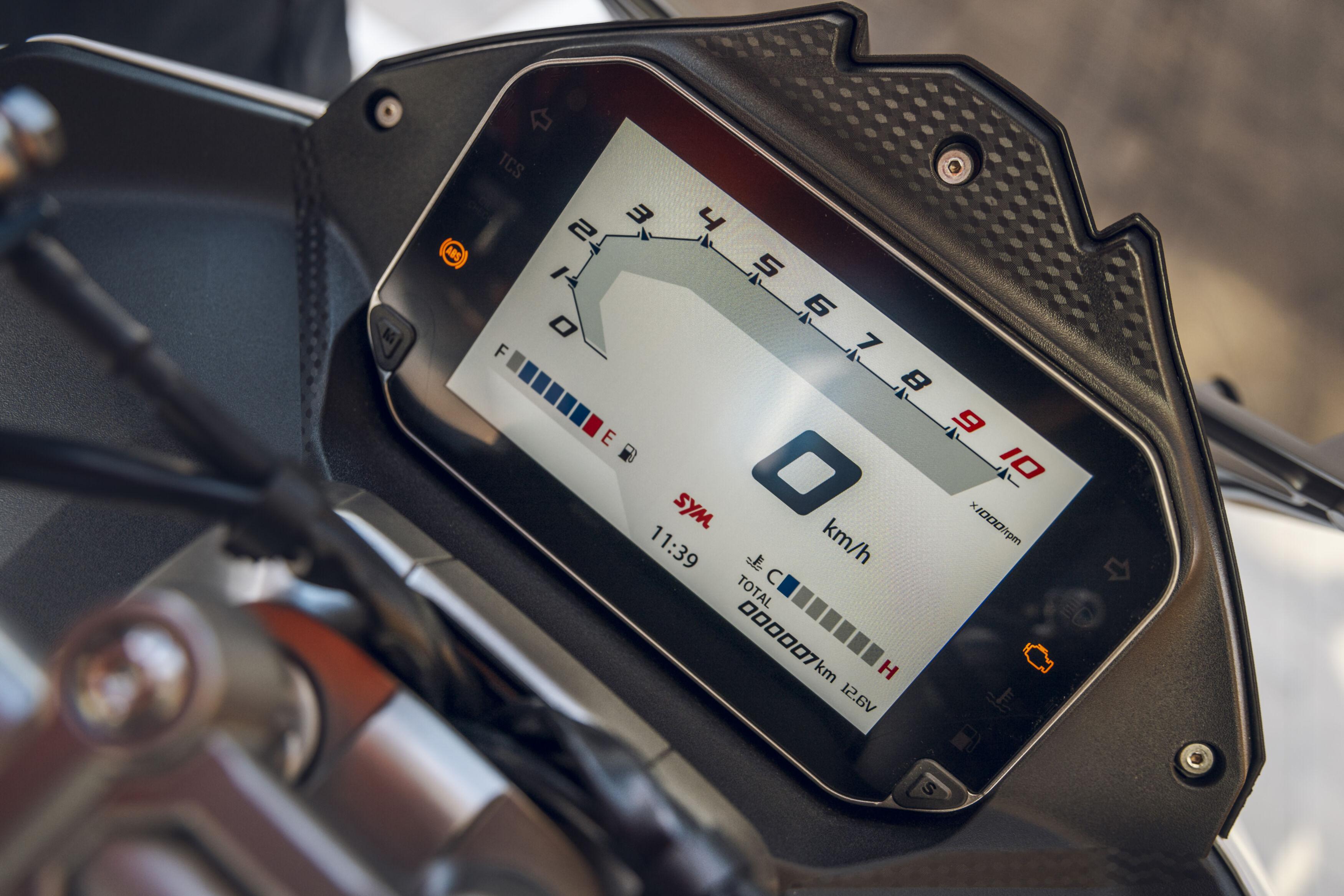 • Dashboard LCD a color de 4,3 pulgadas, que muestra de forma clara toda la información relevante del vehículo, incluyendo el estado del ABS, el TCS, y elementos como la posición de la pata de cabra o la apertura del asiento, que también aparece indicada en el display.