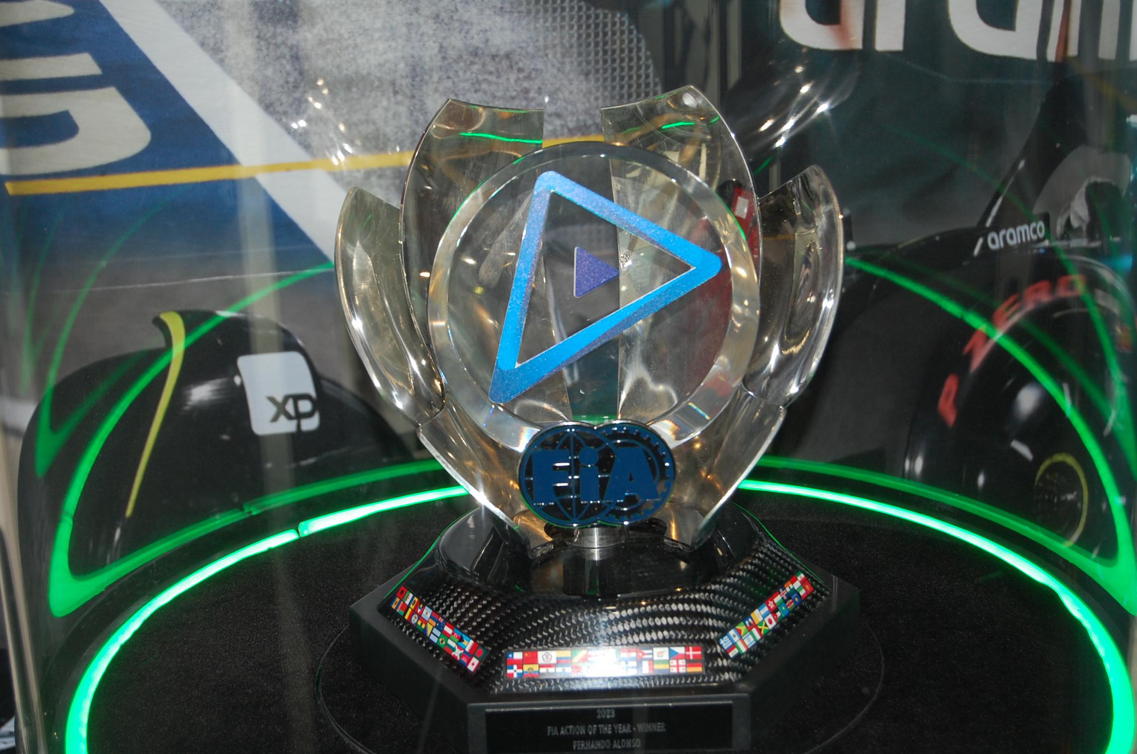 La muestra se completa con una impresionante colección de trofeos, cascos, monos de competición, guantes y recuerdos personales, además de objetos curiosos de sus diferentes etapas en McLaren, Ferrari, Alpine y Aston Martin. En vitrinas cuidadosamente iluminadas se exhiben también motores, piezas técnicas y fotografías que ilustran momentos clave de su trayectoria.