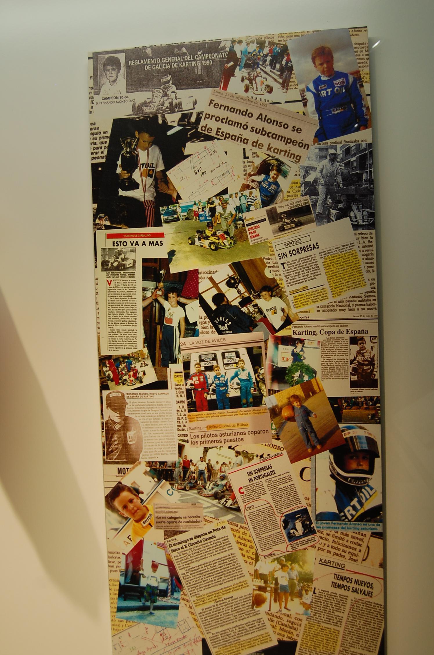 Entre las piezas más emblemáticas se encuentra el primer kart con el que compitió siendo niño, fabricado artesanalmente por su padre, así como una selección de monoplazas que marcaron hitos en su carrera.