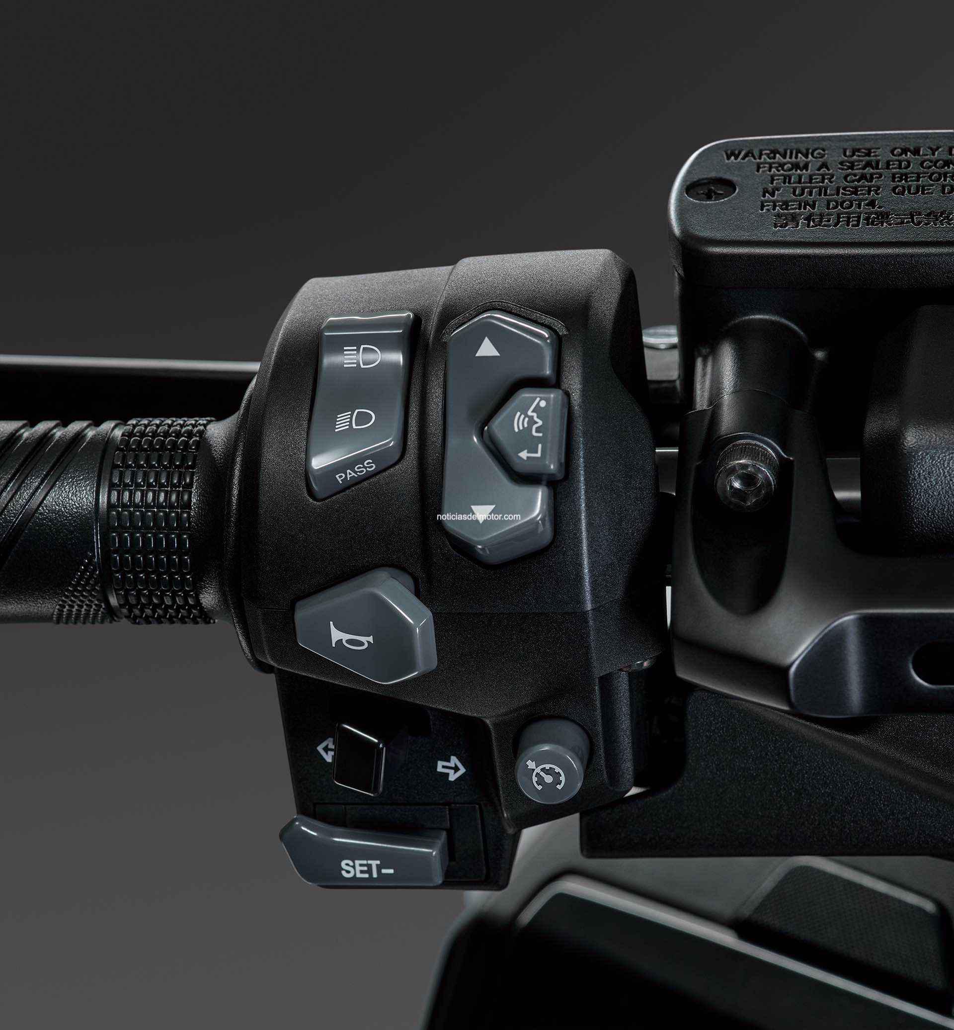 - Acelerador electrónico (Ride-by-Wire) y control de crucero: El sistema de acelerador electrónico permite activar el control de crucero, disponible a partir de los 50 km/h.